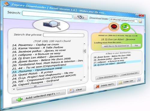 Zaycev Downloader - это программа для удобного поиска и скачивания музыки с популярного русского mp3-портала!