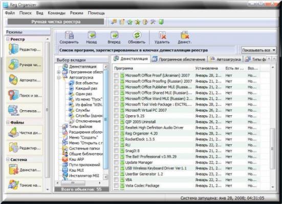 Reg Organizer - это многофункциональная программа для чистки реестра и его обслуживания, а также работы с конфигурационными файлами. Позволяет просматривать и редактировать системный реестр, осуществлять предварительный просмотр импортируемых reg-файлов (в том числе и из Проводника). Функция поиска в реестре предоставляет возможность производить глубокий поиск в реестре, находя все ключи, относящиеся к интересующему приложению. Также Reg Organizer поддерживает функции управления конфигурационными файлами различных типов.