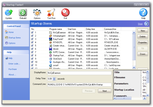 Утилита Startup Faster значительно ускоряет процесс загрузки операционной системы. Как правило, приложения, которые стоят в автозагрузке Windows начинают одновременно запускаться, что приводит к резкому торможению компьютера. Startup Faster организует процесс загрузки системы таким образом, что приложения стартуют одно за другим. Результат такой организации - время загрузки заметно уменьшается.