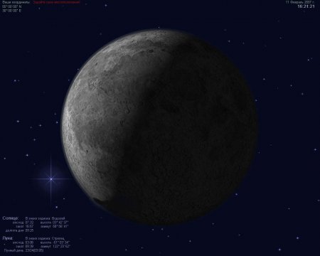 Заставка в виде реалистичной модели луны на фоне мерцающих звезд. Фаза луны соответствует истинной и изменяется в реальном времени.