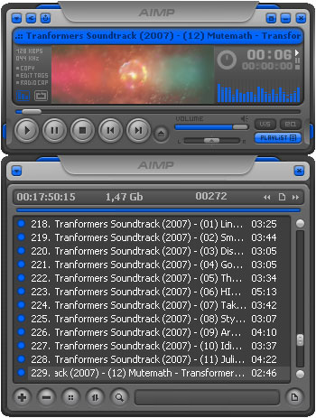Аудиоплеер AIMP - бесплатная программа для воспроизведения аудиофайлов. Многофункциональность обеспечивается благодаря встроенным утилитам (можно перекодировать музыку из одного формата в другой, записать звук с микрофона или другого звукового устройства, отредактировать тэги музыкальных файлов, а так же группой переименовать или отсортировать их). Программа имеет чувствительный 18-ти полосный эквалайзер, встроенный аудио конвертер, граббер, редактор тэгов, звукозапись, мультиязычную поддержку, возможность настройки глобальных и локальных горячих клавиш, функцию вкл/выкл компьютера в заданное время или по окончанию плейлиста, потребляет минимум системных ресурсов, поддерживает множество форматов. Аудиоплеер AIMP может быть настроен индивидуально программа отличается большой гибкостью. С помощью плагинов можно расширять возможности стандартного пакета программы: добавлять новые утилиты и изменять уже имеющиеся. Программа полностью на русском языке.