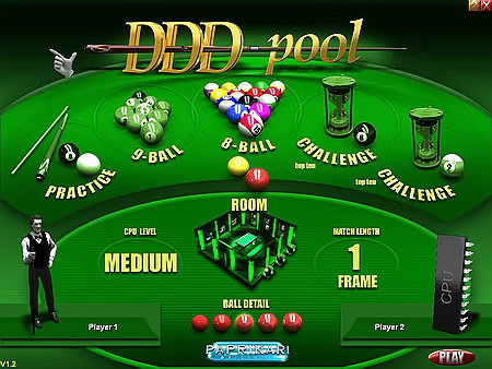 Попрактикуйтесь в режиме обучения, затем сыграйте в восьми - или девятишаровый пул против своих друзей или компьютерного игрока – или сыграйте на время в любом из двух усложненных режимов и попадите в таблицу лучших. Вы можете выбрать одну из трех детально прорисованных комнат для игры. Операционная система: Windows 98, Me, 2000, XP, Vista