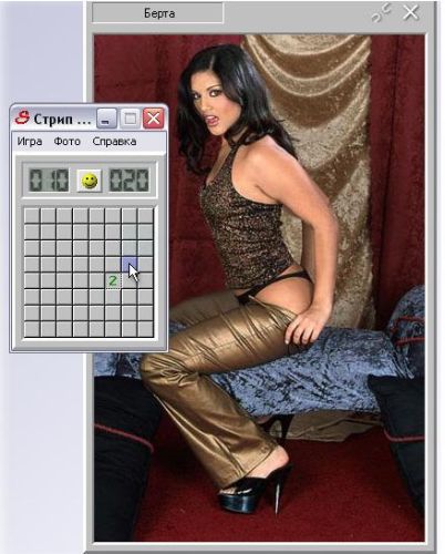 Сапер на раздевание - Самый, что ни на есть, стандартный виндовый сапер с прикрученными к нему картинками фривольного содержания. Игра для взрослых на раздевание. Содержит галерею из 6 участниц и несколько уровней сложности.