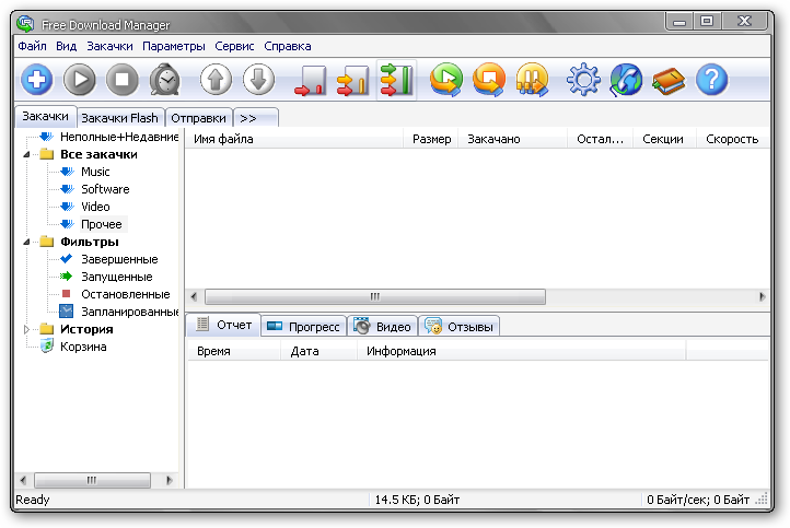Free Download Manager - программа для скачки как отдельных файлов, так и целых сайтов. Имеются такие стандартные функции, как интеграция в Internet Explorer и плавающее окошко-корзина закачек.