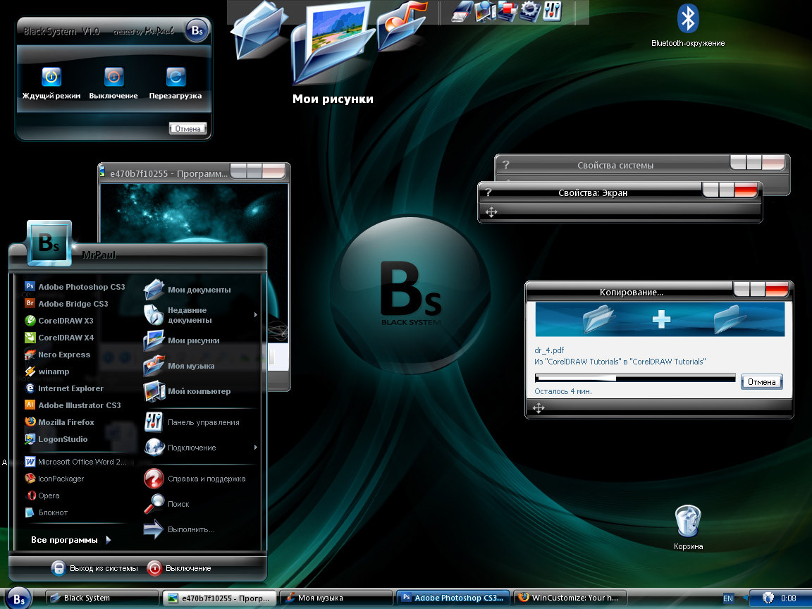 В архив также включены: экран приветствия для LogonStudio, экран загрузки для BootSkin.