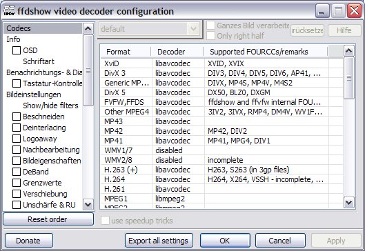 Фильтр, повышающий качество воспроизведения фильмов кодированных в форматах DivX и XviD, особенно с низким битрейтом. Поддерживается большинство современных кодеков.