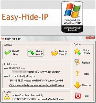 [center] Лучший в анонимности - Easy Hide IP v1.66+crack [/center] Easy Hide-IP - программа для обеспечения интернет-безопасности, путем замены вашего реального IP адреса на другой. Проста и незатейлива - в наличии три кнопки: всего один клик и Ваш реальный IP-адрес будет скрыт, следующий клик и IP-адрес поменялся еще раз, ну а третьим кликом можно вернуть свой реальный адрес. Позволяет автоматически находить 100% анонимные прокси и подставлять их, прокси не нужно проверять на работоспособность, они 100% работоспособны. Также программа очищает кеш, куки, историю и т.д.