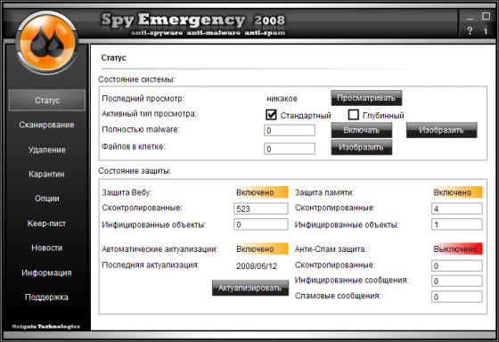 Spy Emergency 2008 - это anti-spyware программа, отслеживающая spyware, adware, malware, homepage hijackers, remote administration tools, dialers, keyloggers и многие другие виды инфекции. Программа Spy Emergency 2008 - быстро и безопасно удаляет spyware и другие интернет-инфекции c вашего компьютера. Spy Emergency защищает Вас против тысяч инфекций, включая: Spyware, Adware, Malware, ActiveX Components, Dialers, Keyloggers, Trojans.