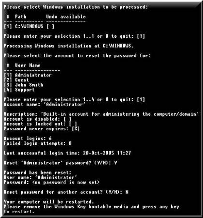 Windows Key Enterprise позволяет обнулить пароль любой учетной записи Windows. Достаточно произвести загрузку с загрузочного диска, выбрать раздел, на котором установлена система и указать нужную учетную запись. Есть возможность отмены внесенных изменений. Диск, предназначенный для сброса пароля Администратора при утере этого пароля или острой необходимости доступа к его системе. Сбрасывает пароли: Local Administrator password; других локальных аккаунтов и Domain Administrator password.