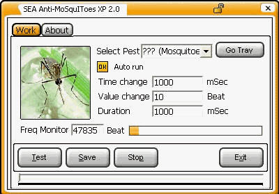 Наступило лето, и появилась проблема - комары. Даже в городе эти жужжащие монстры не дают жить спокойно, выползая откуда-то из подвала. Как оказалось, для того чтобы избавиться от них, достаточно иметь дома компьютер. Принцип ее работы прост: утилита генерирует звук определенной частоты, которую комары на дух не переносят. В итоге программа сидит в трее и тихонечко свистит через колонки, комары в ужасе бегут.