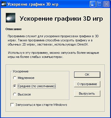 G3dAccel - позволяет запускать более мощные игры на более слабых компьютерах. Служит для ускорения прорисовки графики 3D играх. Также программа способна ускорять графику и в обычныз 2D играх, заставках, испльзующих DirectX.