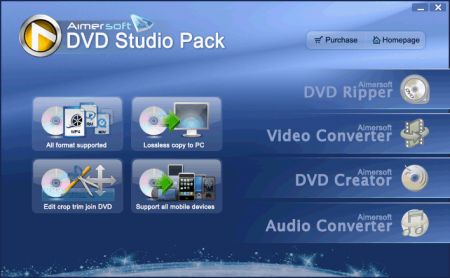 Aimersoft DVD Studio Pack - популярный мультимедиа пакет для работы с DVD носителями, состоящий из четырех утилит. Aimersoft DVD Ripper - поможет вам скопировать информацию с диска на ваш компьютер; Aimersoft Video Converter - переконвертирует в более подходящий формат видео для дальнейшей переброски его на мобильные устройства; Aimersoft DVD Creator - поможет создать свой собственный DVD диск с меню; Aimersoft Audio Converter - переконвертирует любые аудио файлы в более популярные форматы.