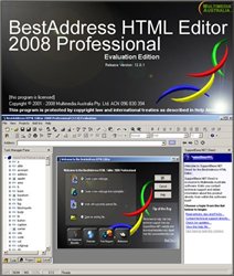 BestAddress HTML Editor 2008 – полнофункциональный HTML редактор от компании Multimedia Australia, позволяющий без особого труда создать собственный сайт в сети Интернет. Программа умеет создавать меню на основе DHTML кода, проверяет синтаксис, подчеркивая ошибки, обладает поддержкой интеллектуального ввода кода, обладает богатым набором встроенных шаблонов и может быть использована для обновления ранее созданного ресурса. Пользователям программы доступна помощь в режиме онлайн, которая содержит всесторонне рекомендации по работе с утилитой, информацию консультационного характера и исчерпывающую справочную информацию о HTML коде версии 4.01 и CSS2.