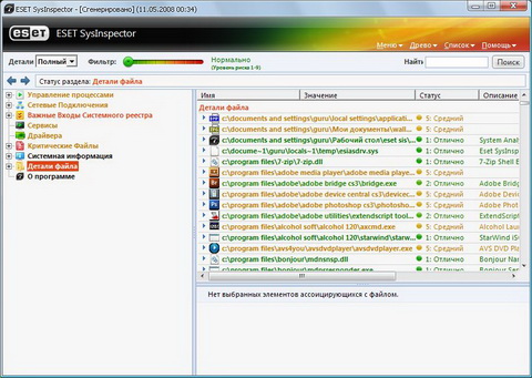 Русифицированная версия ESET SysInspector 1.1.1.0 предназначена для диагностики вашего ПК. Использование ESET SysInspector является совершенно безопасным, программа только собирает информацию, не внося никаких изменений в файлы и данные. ESET SysInspector проводит углубленный анализ вашего PC, обнаруживает запущенные приложения, а также записи в системного реестра, сетевые подключения и проводит сбор других данных для решения проблем системы.