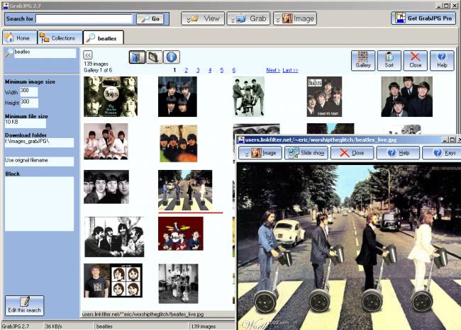 GrabJPG PRO - поисковик картинок. Все предельно просто: указываете слово для поиска, минимальные размеры изображения и запускаете поиск. Программа сама "гуглит" и складывает все добро в указанную папку. Поддерживается предпросмотр картинок, их каталогизация и граббинг ссылок-источников. Можете также похитить все картинки с определенного сайта (Grab a website). Разработка удостоена большого кол-ва интернет премий (в продолжении скрин)