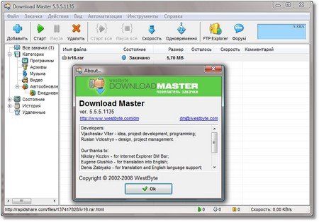 Download Master 5.5.5.1135 - новая версия популярного менеджера закачки. Download Master объединяет в себе практически все функции, представленные в других менеджерах для закачки файлов. Download Master встраивается во все известные браузеры, и пользователю не приходится вызывать окно программы, чтобы добавить ссылку на файл, вся операция проходит автоматически.