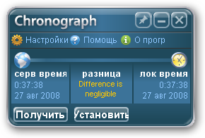 Chronograph Atomic Time Clock автоматически находит в Сети точное время и устанавливает его в компьютер пользователя. Используется время с серверов "Национального института стандартов и технологий" (США). Программа имеет простой приятный интерфейс. Также программа может заменить стандартные часы Windows в системном трее. Поддерживает скины, может показывать календарь, устанавливать будильники.