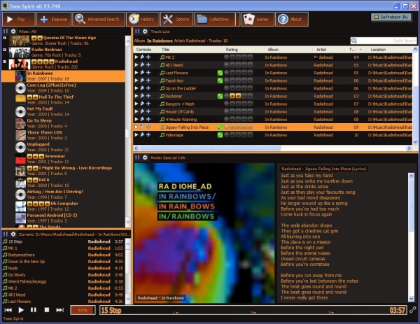 Совершенно бесплатный аудио/видео плеер, он же удобный органайзер. На борту Teen Spirit имеется встроенный мультимедийный проигрыватель поддерживающий форматы MP3, MP2, WMA, AVI, MPG, MPEG, ASF, модуль поиска композиций и видео по внутренней ID3v2 базе данных (по тегам). Помимо прочего выделяется умение работать с любыми носителями как локальными (CD, DVD) так и с сетевыми. Обладает большим количеством функциональных возможностей для редактирования и управления коллекцией. Стоит отметить что данная программа имеет множество наград журналов в том числе от PCWorld.