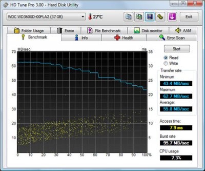 HD Tune Pro - программа для планомерного детального тестирования текущей работоспособности и производительности жестких дисков с различными интерфейсами (SCSI, SATA или IDE), а так же карт памяти и flash-дисков.