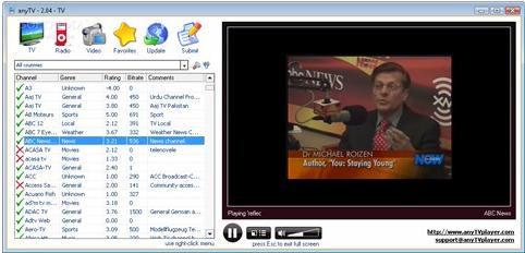 AnyTV 2.24 - Бесплатная программа для просмтра ТВ и прослушивания радиостанций через интернет.